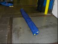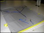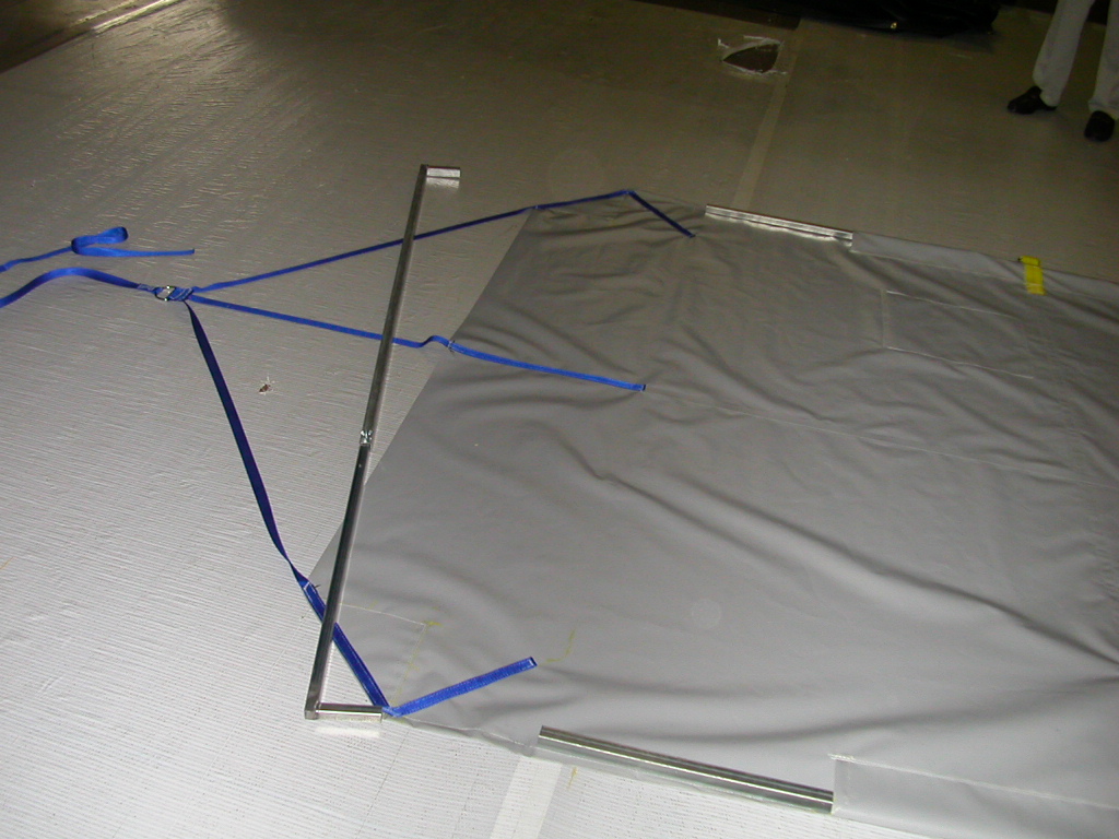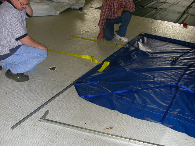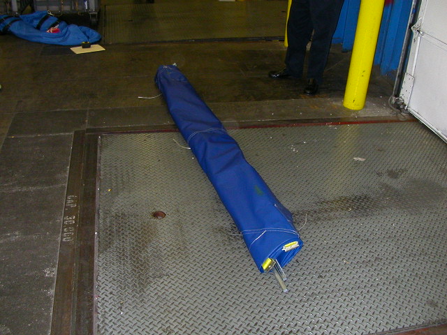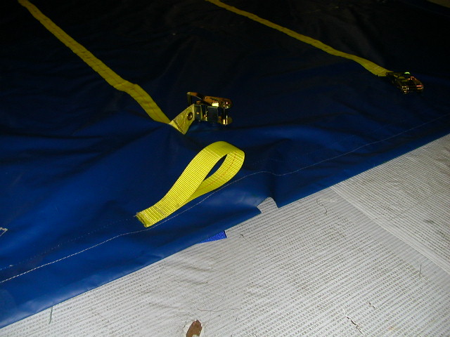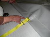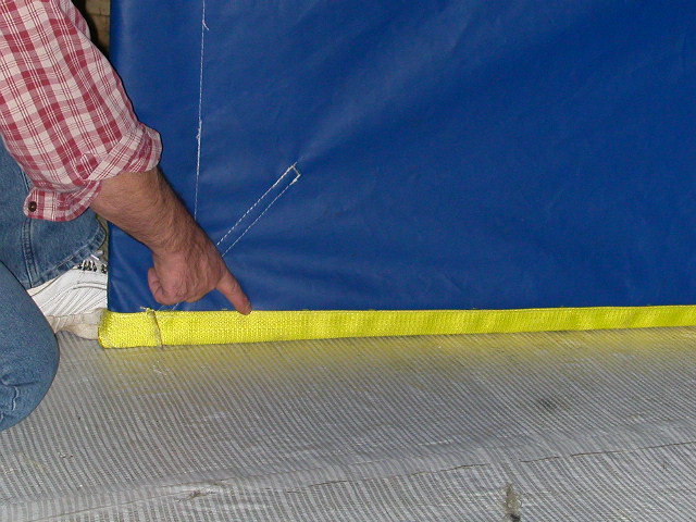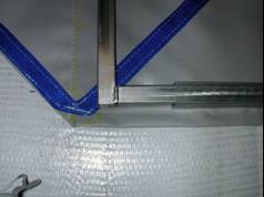 abrasion to the webbing reinforcement on the bottom of the curtain when