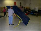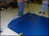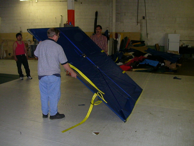 driver side wall and lift up on yellow webbing handles provided to avoid