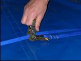 - Thread the webbing straps back through both large ratchets (which now