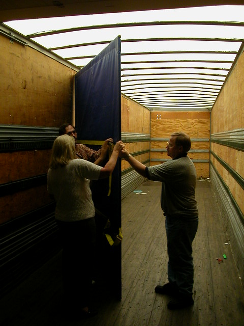 the curtain may then be installed across the width of the trailer once
