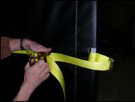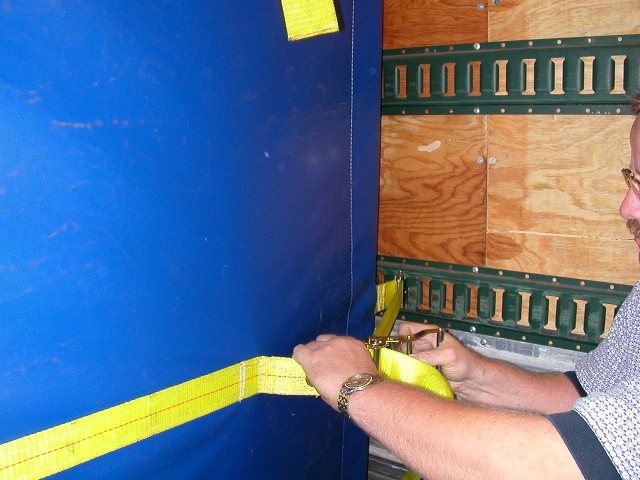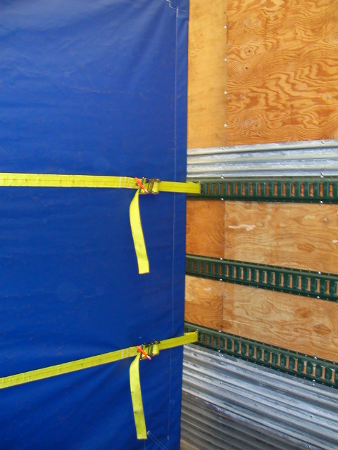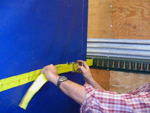 The curtain is made secure across the width of the trailer by first