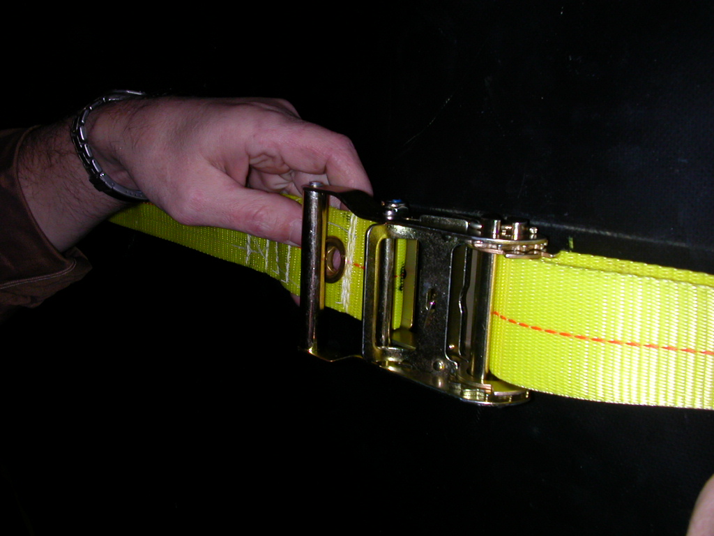 the (2) large ratchets and horizontal straps is face down on the floor.
